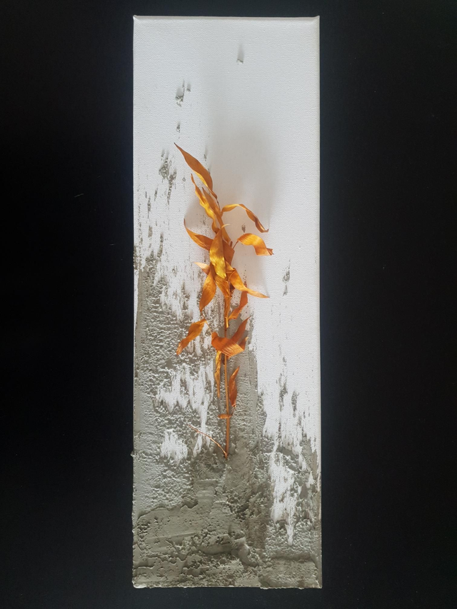 Béton et plante stabilisée sur toile.
